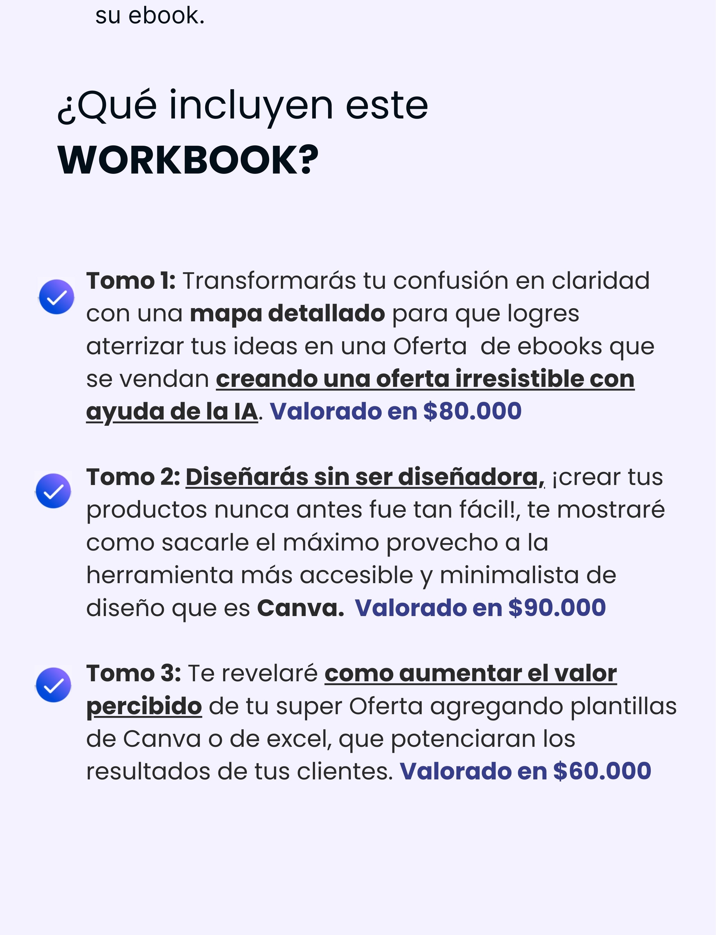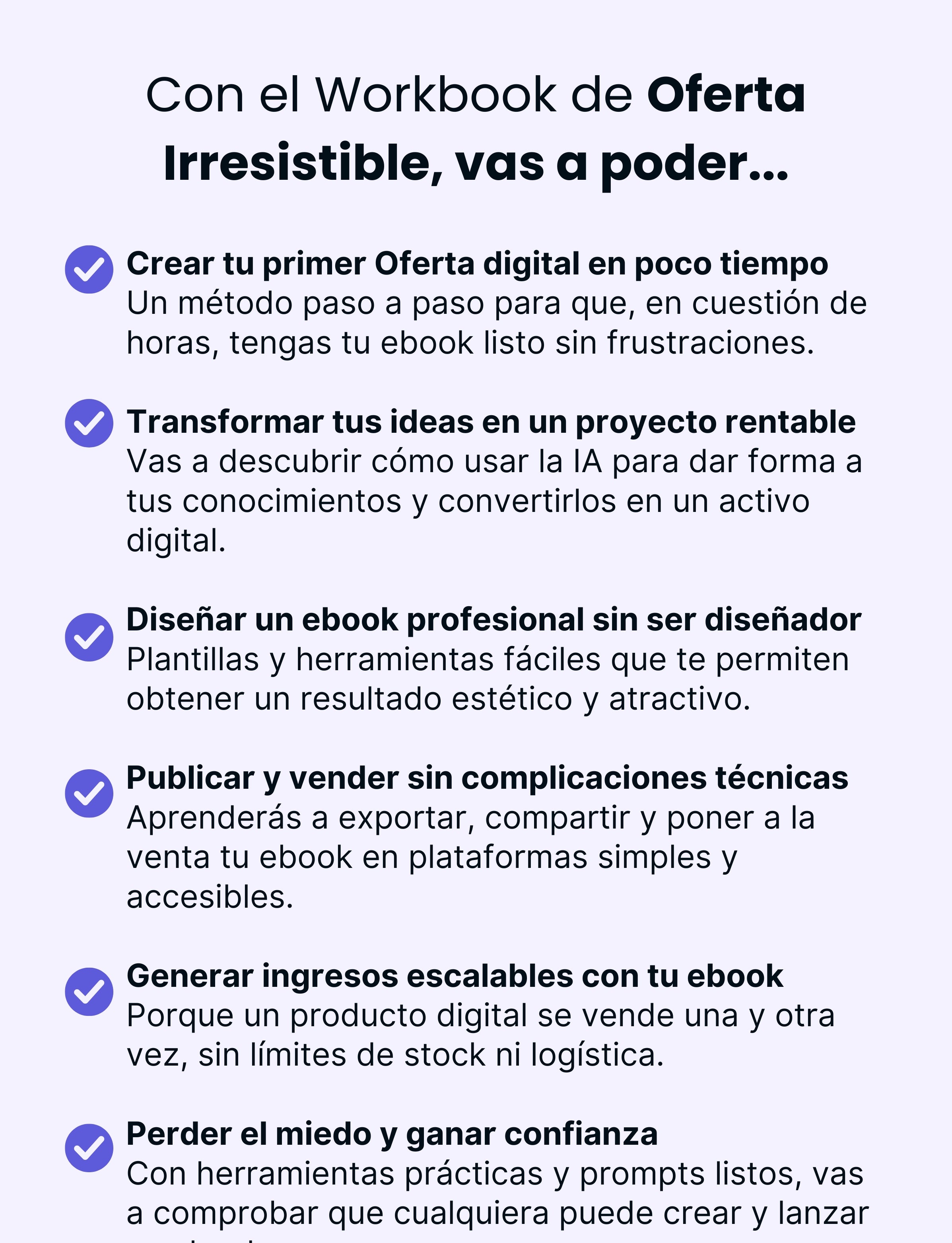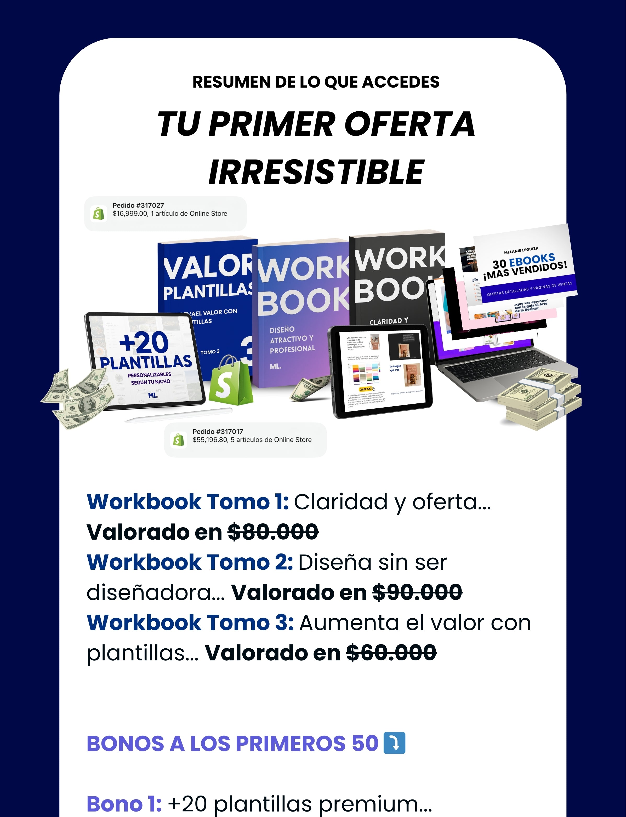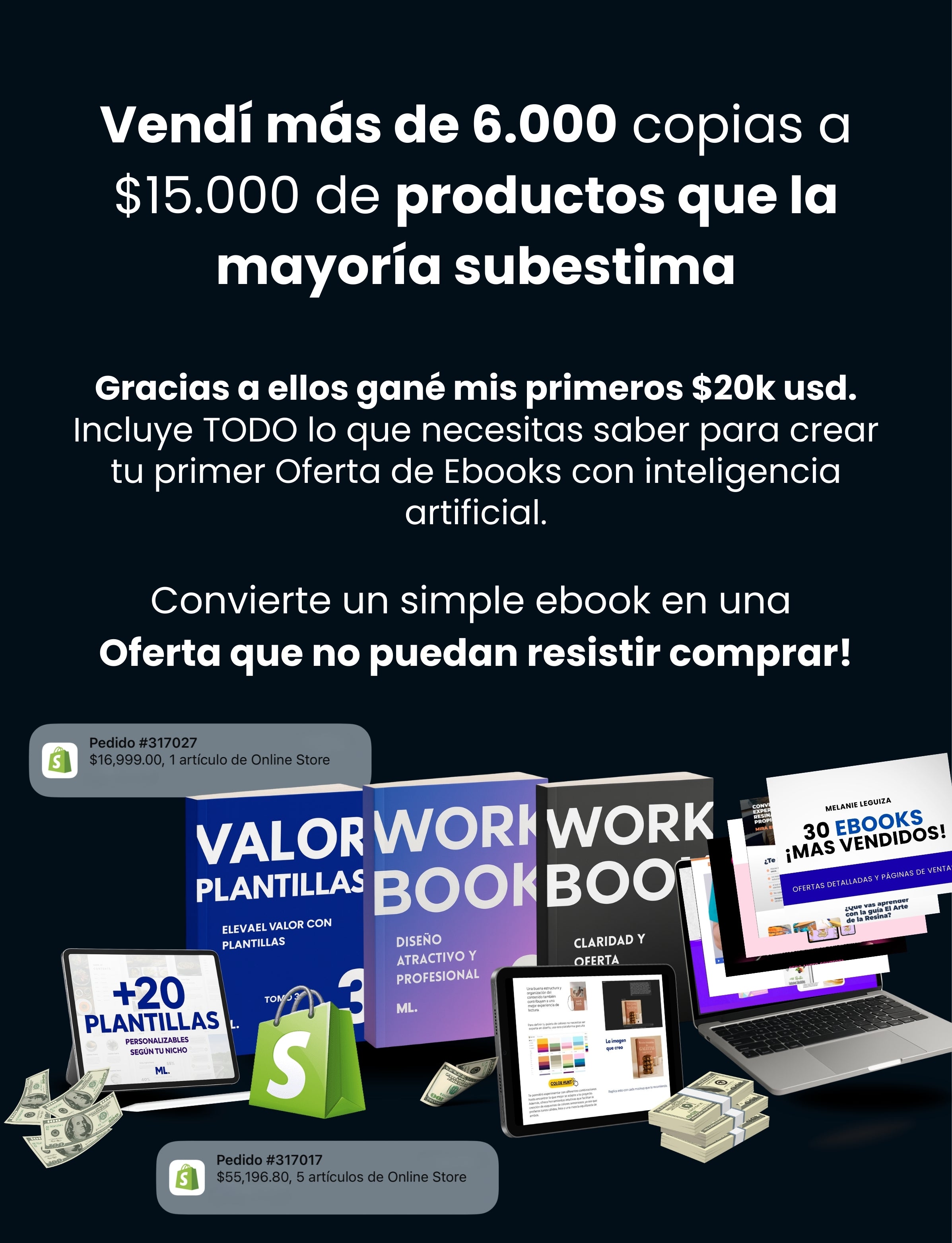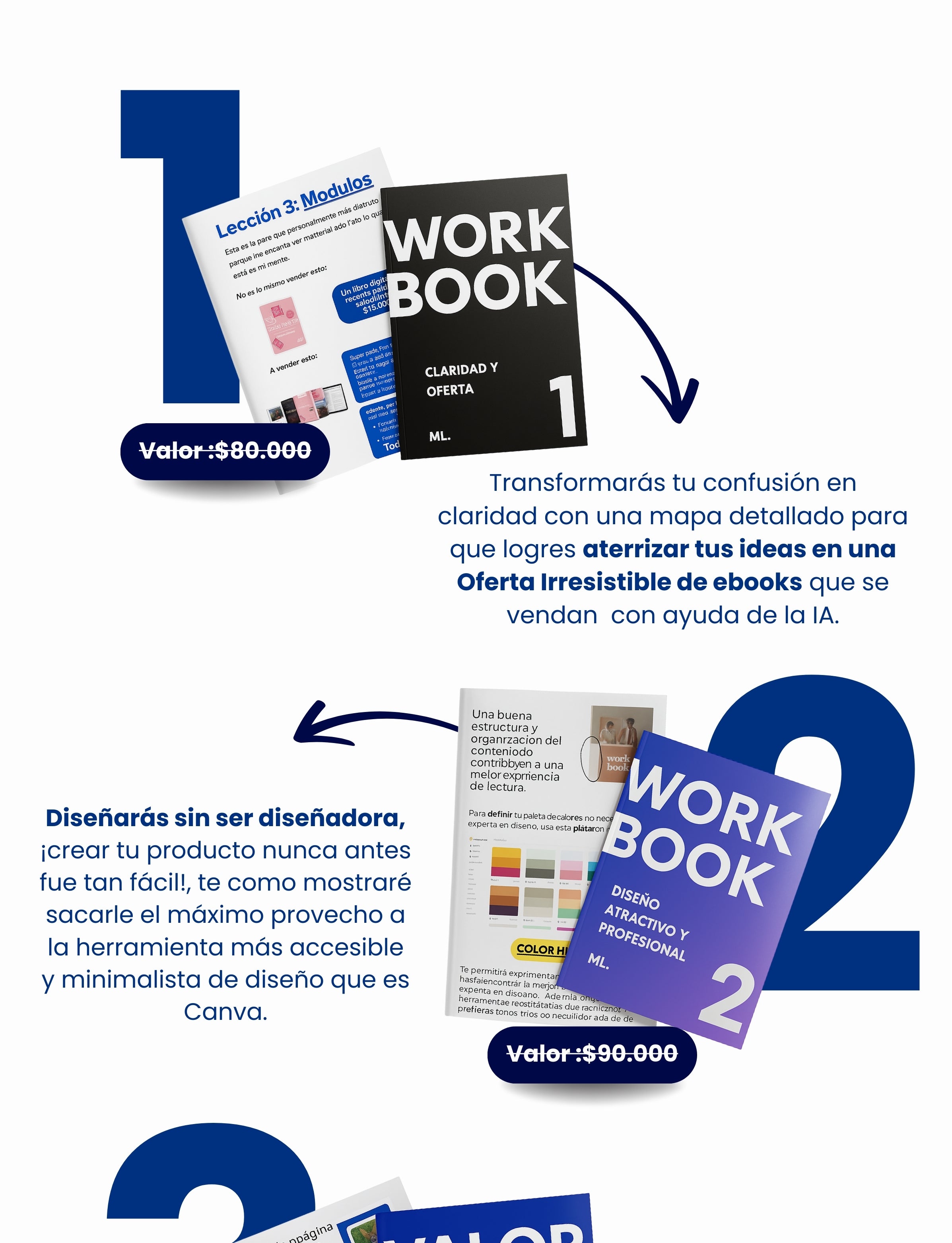 Este producto es un conjunto de libros de trabajo (libros digitales), donde pondrás ir paso a paso hasta desarollar tu primer oferta irresistible de ebooks.